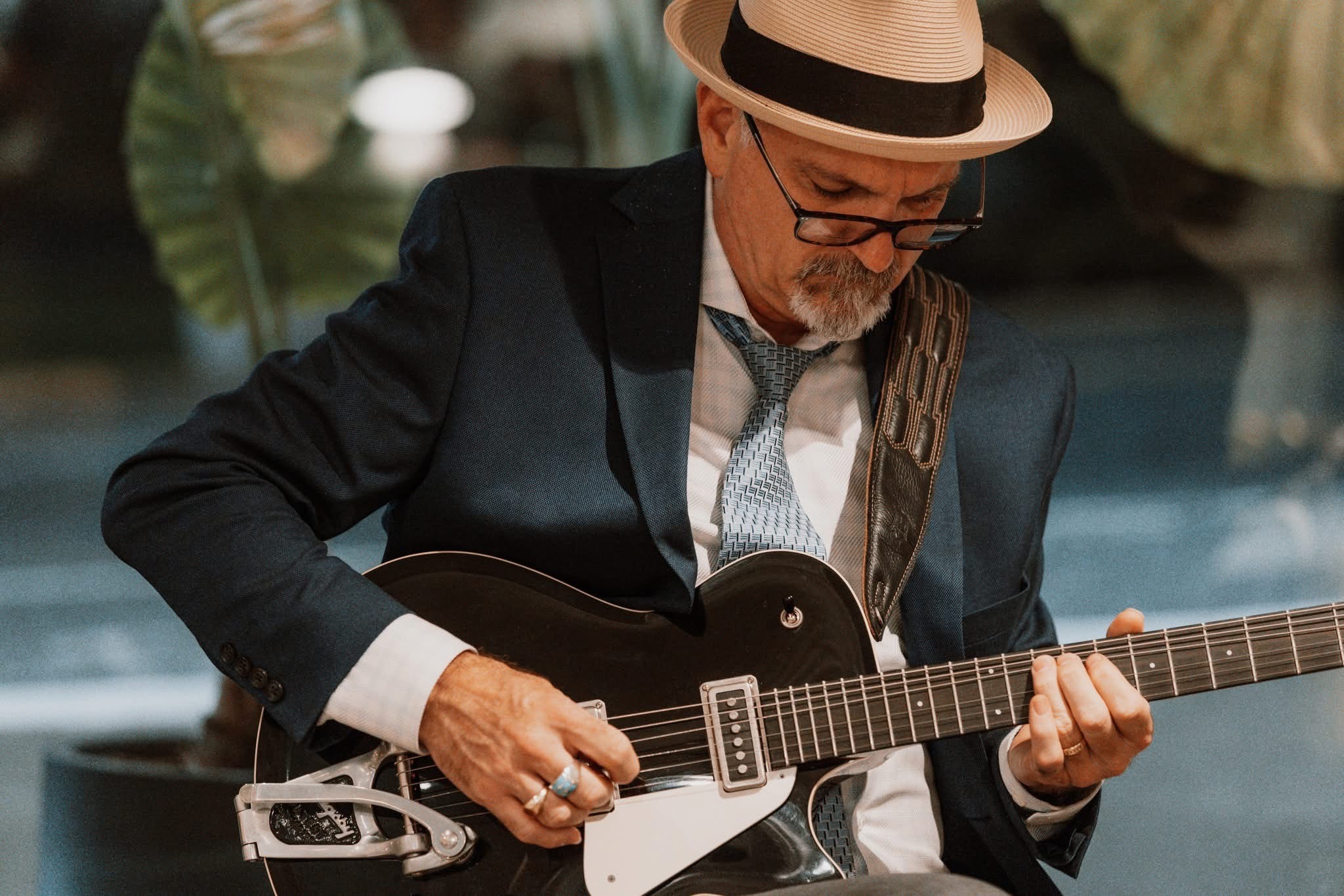 Currently, Sumner plays guitar in Doug Duffey and BADD, featuring singer, pianist, and inductee of the National Blues Hall of Fame and the Louisiana Music Hall of Fame, Doug Duffey. The band’s August 2025 album, Souvenirs, was recorded and mixed by Sumner at his Fort Sumner Studio. Sumner’s other recent projects include transcribing, in notation and tablature, several rare vintage recordings of Mississippi-born jazz guitarist Snoozer Quinn (1907-1949), including performances recorded in 1949, when Quinn was hospitalized at New Orleans Charity Hospital for tuberculosis. Those transcriptions are published in Snoozer Quinn: Fingerstyle Jazz Guitar Pioneer. Dan is also a sponsored Benedetto artist and plays a bespoke 16-B archtop jazz guitar, handmade by master craftsman Bob Benedetto.