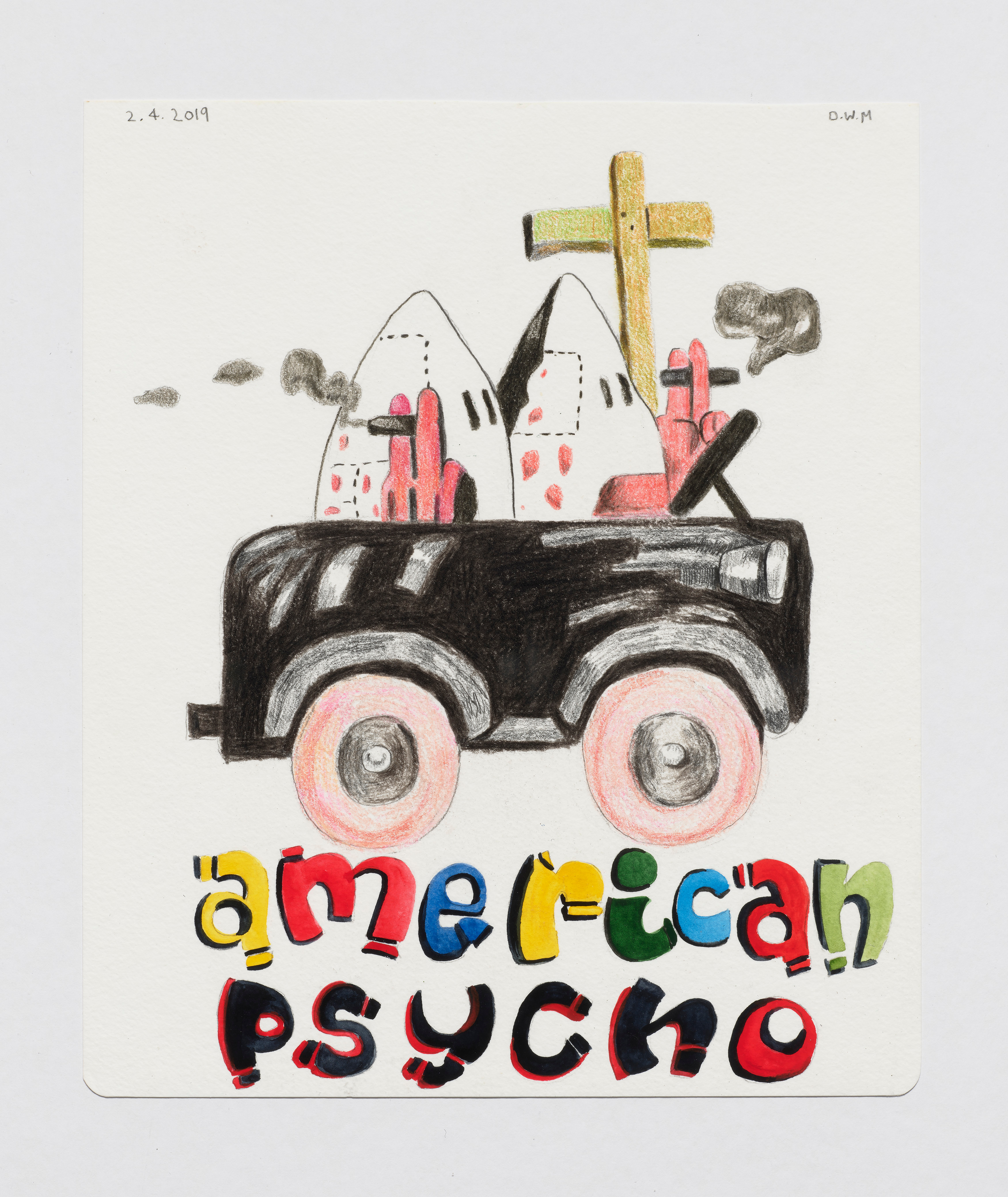 (David McGee, american psycho, 2019, graphite, colored pencil, and gouache on paper)