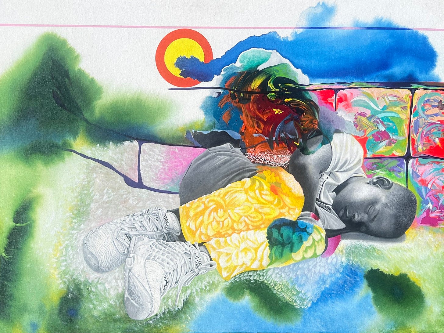 (Zsavon Butler, We Dream In Dark Times, mixed media on archival paper, 2025)