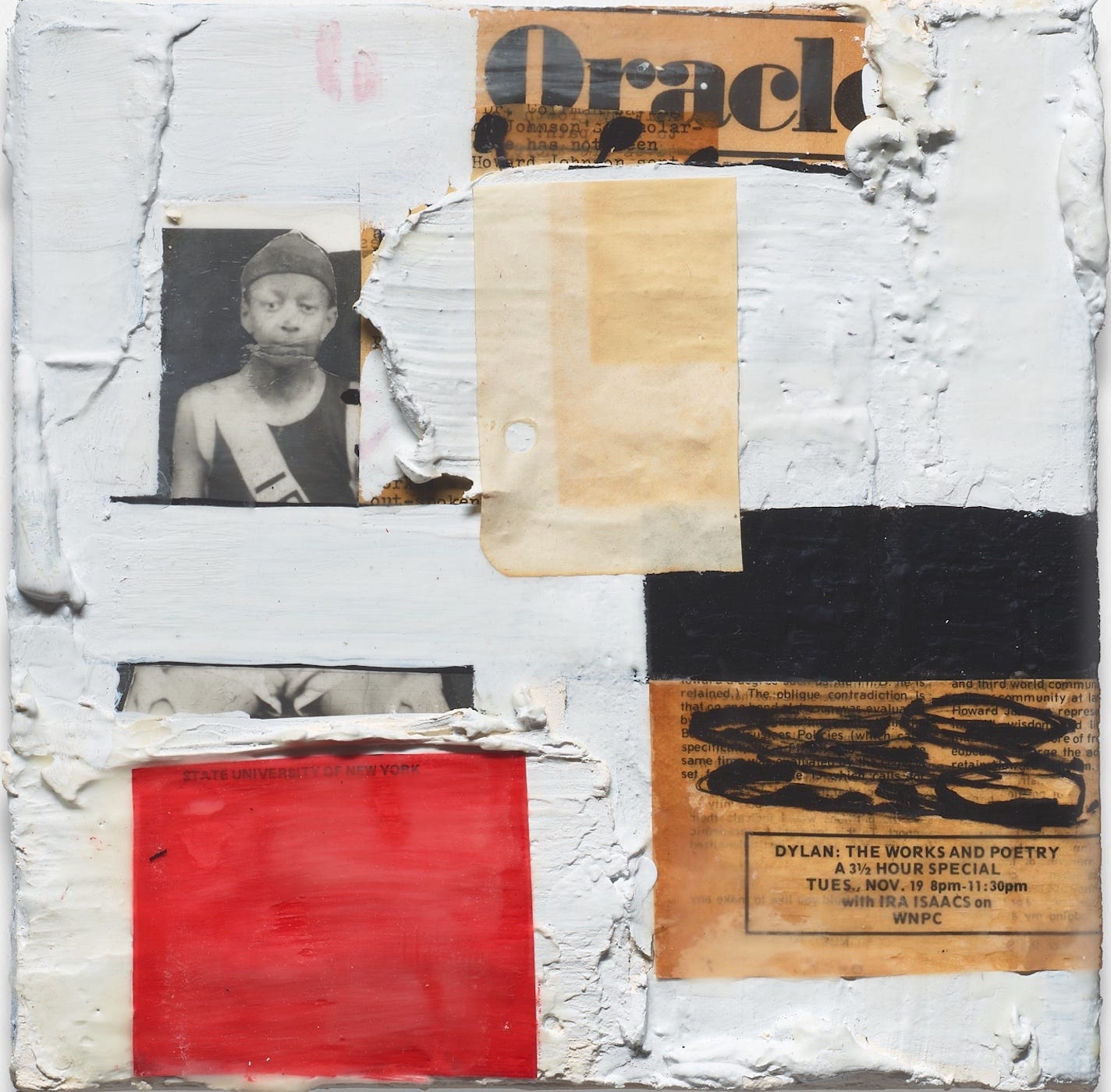 Throughout this soundscape, distortion, the superimposition of rhythms, and the rough edges of my edits (all done digitally) are an aural response to the physical textures of McGee’s paintings and collages.